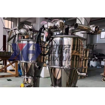 氣動式真空上料機利用壓縮空氣通過真空發生器產生高真空,實現對物料的輸送。真空上料不同于機械上料,不需要機械上料的跨度定位、無阻隔的安裝等限制條件,真空上料可使用軟性管路進行物料輸送,在結構安裝上存在很大的優越性。真空上料可連接拆包投料器、原料倉、混合設備等容倉,并進行輸送。